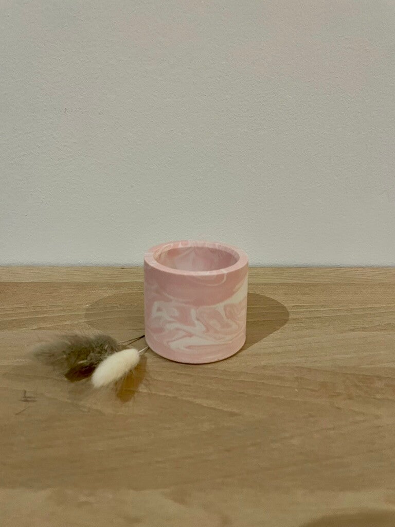 Multifunctioneel rond potje, bijvoorbeeld voor theelichtjes, tandenstokers ... in te steken.